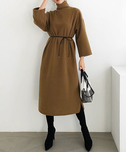 起毛とリブで表情があるタートルネックスタイルのワンピース。Hラインで裾スリット入りのデザインです。 ※WEARに記載してある金額と、DHOLIC通販サイトに記載してある金額にシステム都合上、稀に誤差が生じます。正しい金額はDHOLIC通販サイトに記載された金額です。