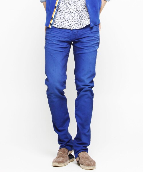 ヴァンキッシュのデニム。ディテール:立体ひげや当たり、色落ちに強弱を付けコントラストを付けるなどユーズドライクな雰囲気を演出したカラーデニム。シルエットは、脚のラインを綺麗に映し出すタイトフィットストレートを採用。カラーリングも春夏にぴったりな季節感の感じさせる色合いに。VANQUISHの10周年にちなみ、ロゴ刺繍、釦が10th Anniversaryの限定復刻デザインとなっております。