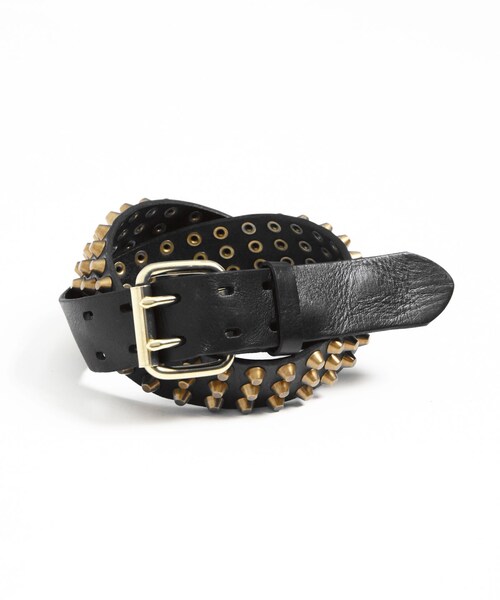 ヴァンキッシュのベルト。ディテール:独特な艶とシワ感が特徴的な肉厚の牛革にプリンスタッズを打ち込んだインパクトのある一本。バックルにはWピンバックルを採用するなど、男らしい無骨な表情が印象的な仕上がり。コーディネートに存在感をプラスしてくれるアイテムです。※ベルト穴は2.5cmピッチで5ホール