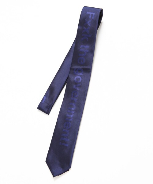 ヴァンキッシュのネクタイ。ディテール:2013年秋冬コレクションのテーマである”FXXK the GOVERNMENT”の文字を大胆に施したインパクトのあるデザインが印象的なネクタイ。その個性豊かなデザインがコーディネートに遊び心を演出してくれます。素材には、程よい厚みと独特の光沢感が特徴的なシルクを使用しています。