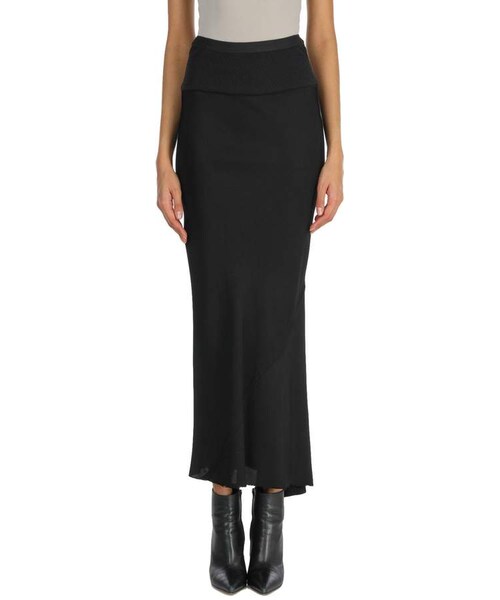 RICK OWENS Long skirts. jersey, elasticized waist, no pockets, folds, unlined, basic solid color, pencil style. 100% Viscose, Cotton, Polyamide