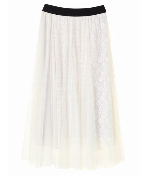 フェミニンかつ、品よく仕立てたレースブロッキングチュールスカート。 ウエストから裾に向かって広がるフレアシルエットが、女性らしさを高めてくれます。 軽やかな雰囲気でこれからの季節デイリーにはもちろん、華やかに見せたいシーンにもおすすめな1枚です。