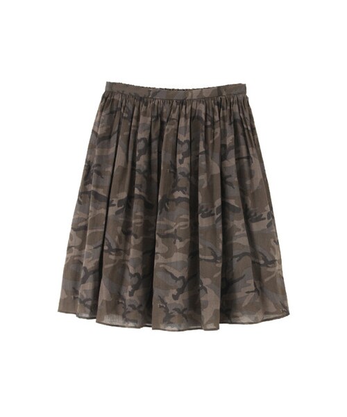 落ち着いたカモ柄が大人カジュアルスタイルにピッタリのギャザースカート。使い勝手のいい膝丈はショートトップスにも相性がよく、もちろんカットソーをインしても決まります。※詳しい洗濯方法については、商品の品質表示タグをご覧ください