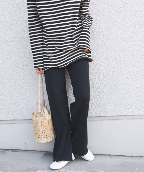 ヒップや股上にゆとりをもたせ、体が泳ぐサイズ感にすることで着やせ効果の高いパンツ。体のラインを拾わず、かつ重過ぎない絶妙な肉感にこだわって素材を選びました。 綿100%よりも速乾性があり、軽快な着心地が特徴。ロングシーズン楽しめるのも嬉しいポイントです。 ※末永く愛用頂く為に、アテンションタグを必ずご確認の上、着用又はお取り扱い下さい。 ※画像の商品はサンプルです。 実際の商品と仕様、加工、サイズが若干異なる場合がございます。 ※屋外での撮影画像は、光の当たり具合で色味が異なって見える場合があります。商品の色味は、スタジオでの詳細画像をご参照ください。 ※カラー:ネイビーについて グレーのようなお色には見えますが、白とネイビーの糸が混じっている商品となります。