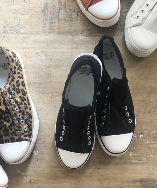 ■FW新色登場 coen定番人気シリーズ「キャンバススリッポン」 ドライタッチなキャンバス地を使用し、トリミングを敢えて切りっぱなしにすることで、ラフ感を演出したスニーカー。 ラウンドを効かせたトゥが女性らしい印象です。 脱ぎ履きしやすいスリッポンタイプも嬉しい。 コナレたっぷりな紐なしタイプのスリッポンは、幅広いコーデにフィットします。 ※実店舗と発売時期が異なることがございます。 あらかじめ御了承下さい。 ※商品サンプルにて撮影しております。 ※撮影場所やお使いのモニター環境により若干お色味が異なる場合がございます。商品のお色味はスタジオ撮影の画像をご参照ください。 ※ベロの付け根部分がゴムの為対応サイズ(cm)に幅がございます。 ※濃色品の場合、摩擦を受けると淡色(特に白)物に色移りする場合がありますので、十分ご注意下さい。 ※ご使用中の強い摩擦や汗・雨など濡れた状態での他の物との接触は、色移りや素材自体の色むらを起こす恐れがありますので、ご注意下さい。 ※ソール部分は経年と共に変色や劣化が生じる場合があります。キャンパス地の変色を防ぐ為、洗濯はお避け下さい。 店舗へお問い合わせの際は、全国のコーエン各店舗まで下記の品名/品番をお申し付け下さい。 品名:EC キャンバススリッポン 品番:7682-607-9050