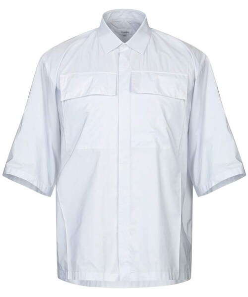 JIL SANDER Shirts. plain weave, no appliqués, stripes, front closure, button closing, short sleeves, classic neckline, two breast pockets. 100% Polyester