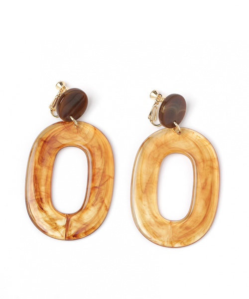 マーブルカラーのBIGシルエットイヤリング。レトロな雰囲気と、独特のカラーがスタイリングのアクセントに。