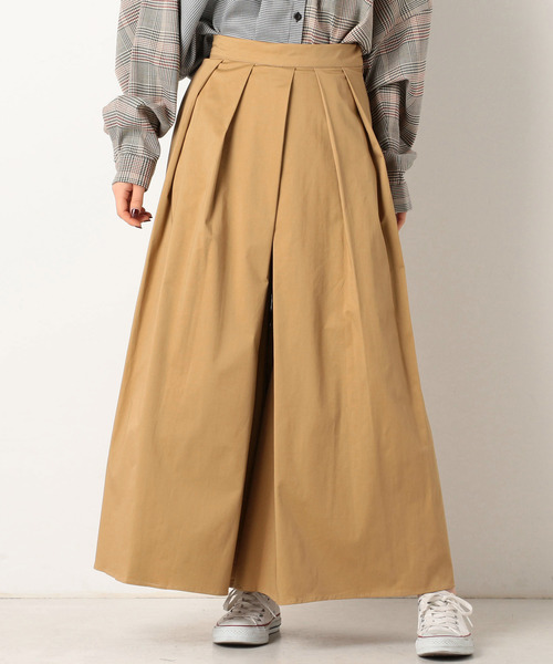 ■スカート見えするほどワイドなフレアパンツ■ 少し張りのあるチノ素材がほどよくカジュアルな1枚。 ワイドパンツよりさらに幅のあるフレアなシルエットが新鮮♪ ボリュームがあるのでトップスをインして着るか、コンパクトなトップスとのスタイリングがオススメです。