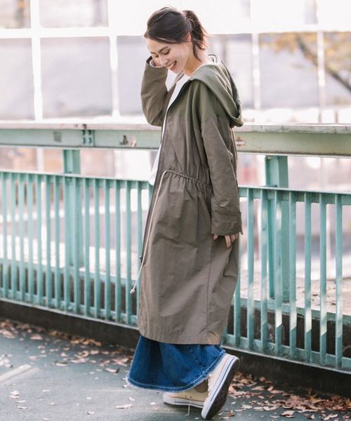 2019 SS NEW ARRIVAL◆スウェットフード素材切り替えのフード付きライトコート◆<MATERIAL>フード部分:スウェット素材です。カリフォルニア産の綿花を原料にした空紡糸(空気の力で撚り合わせた糸)を使用する事で、表側はカサっとしたドライタッチでヴィンテージライクな風合いで、中・裏側の肌に触れる側は通常の柔らかい風合いに仕上げています。肌へのストレスなく、粗野な雰囲気が楽しめる裏毛素材です。身頃部分:布帛のナイロン素材です。ナイロンは形状記憶加工が施され、やわらかな質感でシワになってもすぐに戻るのが特徴です。スポーティーだけどマットな表面感で、シャカシャカせず、カジュアル過ぎないタフタ素材です。<DESIGN>軽さのあるナイロンのコート襟周りをスウェット素材にする事でスポーティーな印象に仕上げたアウターです。ナイロンのシャリ感のある素材ながら、落ち着いたカラーと膝下丈のデザインが、カジュアルすぎないほどよいバランスに仕上がっています。ウエストのドローコードや首まわりのゆったりしたデザインがメリハリを出し、こなれ感を演出してくれます。リラックス感ある着心地ながら、ウエストはキュッ絞れ、裾ににかけてふんわり広がるメリハリのあるシルエットが女性らしさをプラスします。緩めに絞って控えめにギャザーを楽しむ着方もオススメです。ジップを閉じて襟を抜いてワンピースのように着ても可愛く、着回し力もありワードローブにも取り入れやすくなっています。袖まわりのゆったりしたシルエットは、レイヤードがしやすく、さまざまな気温に対応できる一枚です。季節の変わり目に使いやすい軽い着心地も魅力です。小さく畳んでもシワにならない素材は旅行のお供にも最適です。完全撥水ではないのでレインコート代わりには向きませんが、水が染みにくいナイロンタフタ素材なので軽い雨程度なら対応できます。<COLOR>■オートミール:スウェット部分が杢調のホワイト、ナイロン部分はオフホワイトの同色系カラー。やさしい雰囲気がお好きな方におすすめのカラーです。■グレー:スウェット部分が杢グレー、ナイロン部分がベージュの配色カラー。カジュアルなスタイリングがお好きな方におすすめのカラーです。■カーキ:スウェット部分、ナイロン部分共にグリーンよりのカーキ。異素材組み合わせで風合いに違いはありますが同色系です。落ち着いたスタイリングがお好きな方におすすめです。<SIZE>※XSサイズはSサイズより、身幅が2cm小さく、着丈も2cm短くなります。※ややゆったりめなサイズ感のコートになりますので、華奢で小さな骨格の方は、ルーズシルエットを着慣れていないと『着られている』感など大き過ぎるように感じられる可能性もございます。ですがこのようなサイズ感が、今の旬なオシャレコートですので、予めご理解の上お買い求めください。*お取扱いについては、商品についております品質表示にてご確認ください。洗濯:洗濯機使用可.............................≪INFORMATION ≫............................▼商品のお気に入り登録▼『♡』マークを押してお気に入り登録して頂いた商品は、セール開催の通知やクーポン発行などのキャンペーンなど、お得な情報をいち早く受けとる事が出来ますので、ぜひご登録ください。
