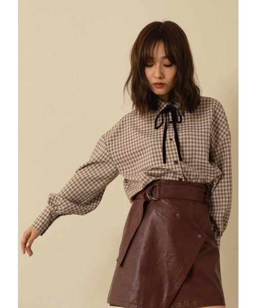 ボリュームスリーブがロマンチックな、チェックシャツ。 しっかりめの袖がレディライクなシルエットを実現してくれます。 付属のベロアリボンはアレンジしやすいように長めのものをご用意してます。 ミニスカートからパンツスタイルまで合わせやすいアイテムです。 カラーは、ピンクとブラウンの2色をご用意しました。