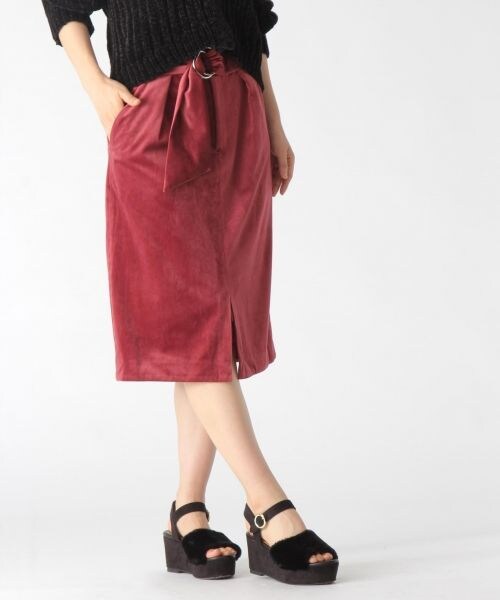 トレンドのベロア素材のベルト付きタイトスカートです。