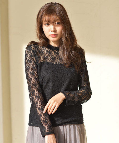 1枚でもオシャレ見えが叶う総レースのハイネックブラウス総レースが華やかで女性らしい、存在感たっぷりのブラウス。1枚でも十分おしゃれに着こなせますがレイヤードの襟元にのぞかせても素敵です。胸元はビスチェ風になっていてオンナっぽさもぐっとアップ。襟元は別レースをつけてハイネックデザインに仕上げました。カジュアルなデニムでもマニッシュなパンツでもどんなコーデもフェミニンに仕上がります♪卒業式。卒園式・入学式・入園式にもぜひどうぞ♪胸から下裏地あり伸縮性ほぼなし薄手首後ろボタン開閉可洗濯:手洗い可