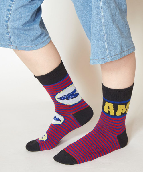 カラフルなアフリカ・キテンゲ柄とフランス語のロゴを組合わせたアシンメトリーデザインのソックス。個性的でお洒落な足元に◎ スニーカーに合わせてもサンダルに合わせてもGOOD! <フランス語の意味> ●ホワイト : 〔BONJOUR〕 こんにちは ●ブルー : 〔ESPRIT〕 精神、機敏な才気 ●レッド : 〔AMOUR〕 愛、愛する人 ※こちらの商品は1点1点職人による手作りとなります。その為、形や色合いなど若干異なる場合がございます。あらかじめご了承ください。 Amina Collection Co.,LTD.