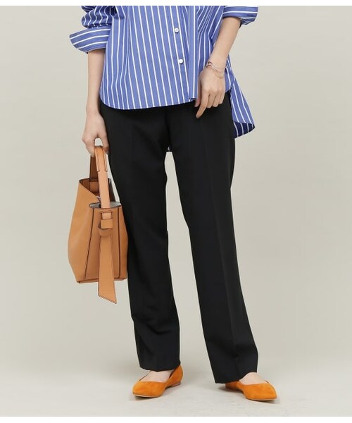 ワイド過ぎず細身過ぎない絶妙なシルエットにこだわったセンタープレスパンツ。どんなトップスとも相性の良いベーシックなアイテムで1つ持っていれば万能に使えるアイテムです。脇線が直線的に仕上げメンズのスラックスの様なラインを意識したマニッシュな印象に◎サイドのタブでサイズ調整ができるので、スタイリングによってハイウエストで履いたり、ややルーズに腰履きのようにウエスト位置を落として履いて頂くことが出来ます。裏側にはADAM ET ROPE'オリジナルのマーベルト仕様で、ドレスパンツのようなきちんと感をプラス。ウエ