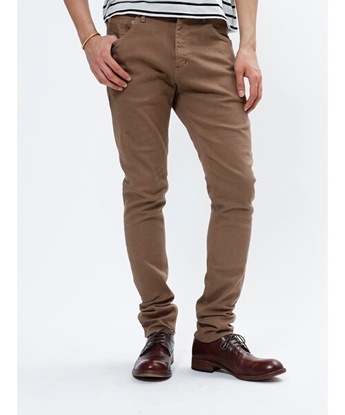 ダーツジーンズ(11698)と同型のカラーパンツ。少しだけ腰回りがゆるいスリムテーパードシルエット。ダーツを要所に施し、デザインのアクセントにしています。ストレッチ入りで伸縮性が高く、柔らかい穿き心地です。