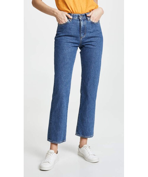 Fabric: Denim Straight-cut style Ankle length Hidden zip at fly Button at waist Slant front pockets Patch back pockets Shell: 100% cotton Wash cold Made in the USA Style # SIMIL30159 Measurements from size 25 Rise: 10.25in / 26cm Inseam: 28.25in / 72cm Leg opening: 15in / 38cm