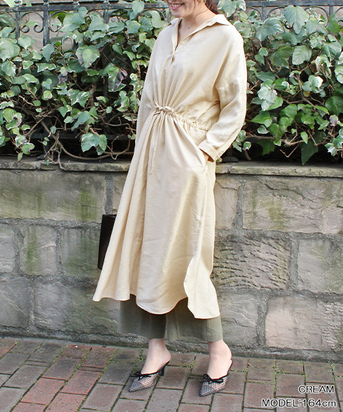 ■mina7月号(p.47) 【かけっこ夏ワンピがーるず。】掲載 ◆2019SS新商品◆ボディをゆったりと包むシルエットにリラックスムードが漂うシャツワンピース。 一枚でワンピースとしても、レギンスやインナースカートなどを合わせたレイヤードスタイルも楽しめます。 ◆シルエット ウエストが絞れるデザインで、ワンピースとしても羽織としても2wayでお使いいただけます! 膝下の丈感が大人っぽく、上品な印象に。 ◆素材 滑らかな風合いのレーヨン素材を使用。 薄手で肌触りも柔らかいので1枚でも重ね着しても、ごわつかない素材感です! ■Coordinate■ カジュアルにもきれい目にも、着て頂ける今年注目のシャツワンピース! レギンスやパンツ合わせでレイヤードスタイルも楽しんでいただけます。 足元にヒールを合わせるとグッと大人っぽく、きれい目スタイルに。