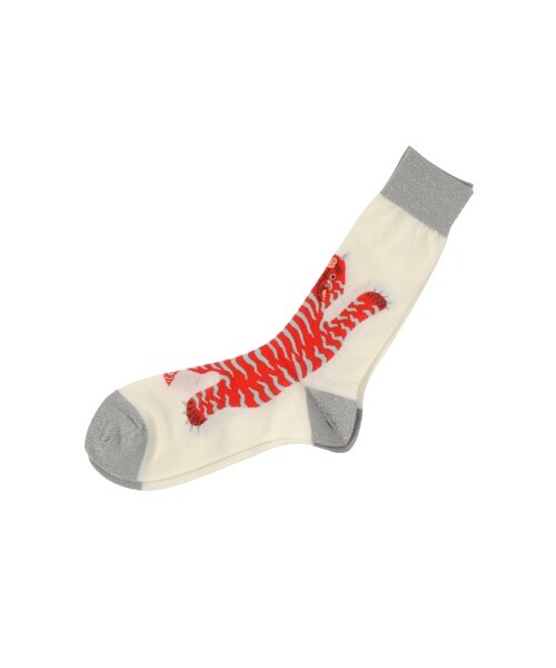 ドラゴンをプリントしたソックス。つま先やトップラインのラメの切り替えがポイント。