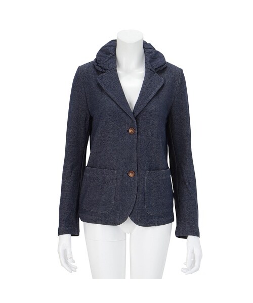 中肉のコットン素材を使用したテーラード・ジャケット。ボーダー柄の裏地と中綿入りの衿がポイント。Torso:H163.5 B80 W58.5 H86 着用サイズ:01サイズ