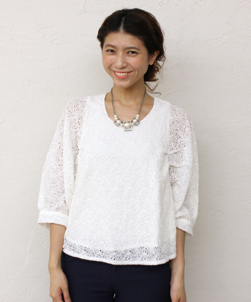 mystic(ミスティック) 繊細なレースがフェミニンな印象のプルオーバーは春に着たくなる1枚!ボリュームのあるバルーン袖も可愛いポイントです。 タイトボトムや、デニムを合わせてカジュアルダウンするのもお勧め。