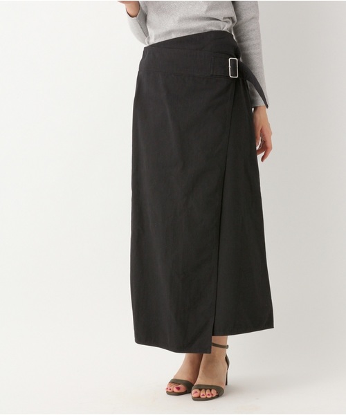 取り外し可能なワンショルダー付ラップ風スカート。 カジュアルな印象ですが、微光沢の柔らかい素材で仕立てることで女性らしさをプラスしています。 着脱はバックファスナーで簡単にでき、バックルで多少のサイズ調整も可能です。