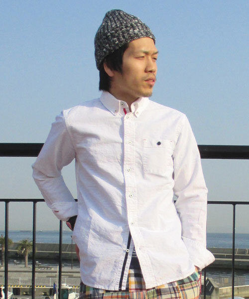一見シンプルながら、トリコロールカラーが散りばめられたオックスフォードボタンダウンシャツになります。ステッチや前立て裏、背中ヨーク部分など、細かなトリコロール使いが◎。さらりと羽織るだけでもポイントになってくれます!ブルー:H180 B86 W70 H86 着用サイズ:LARGE