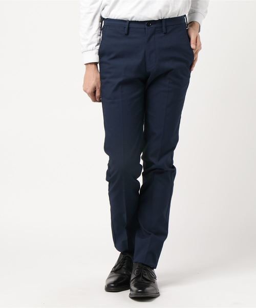 ON/OFF兼用!SHIPS定番のノープリーツパンツシリーズ経糸にアメリカンコットンの綿40/2、緯糸にT400(伸縮性ファブリックの多様なニーズに対応するために開発された、ポリエステル系複合繊維)を使用し、こだわりの先染めで仕上げたノープリーツパンツ。吸水速乾に優れたCOOLMAX(R)(クールマックス(R))を備えたシャンブレー感のあるSHIPS別注素材となっております。T400はストレッチ性も優れているため実用性に富み、スラックス型のノープリーツパンツにしているので、ビジネスでのジャケットパンツのスタイルから、カジュアルのきれい目コーディネートまで幅広く対応できるアイテムへと仕上がっています。※こちらパンツは裾のお直しが必要となります。※裾直しご希望のお客様はお近くのSHIPSにご相談いただくか(有料)、お直し専門店にご相談ください。