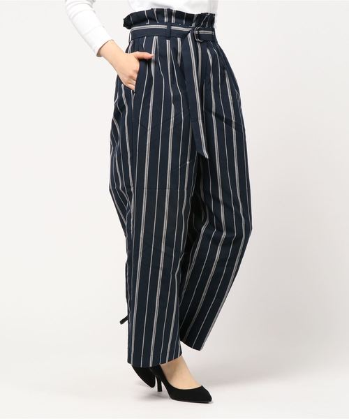 同素材のベルト付きがうれしいワイドパンツ。 ウエストのフリルデザインが可愛らしく、トップスをタックインするスタイルがおしゃれに決まります。 豊富な柄のバリエーションがうれしく、お気に入りの1本がきっと見つかるはず。