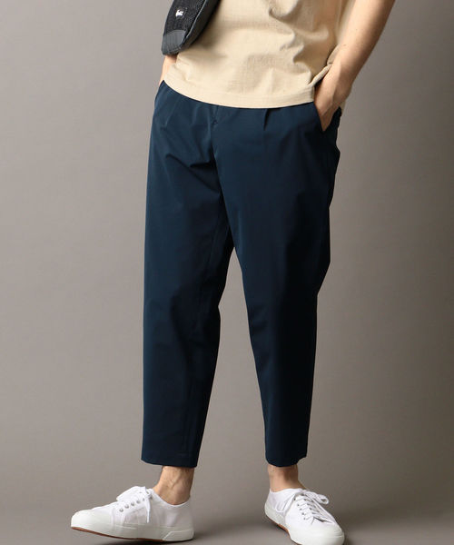 ◆今年も登場!!適度に効いたストレッチで穿き心地の良い一本◆アンクル丈の合繊素材イージーパンツユニチカ社のMOVE FIT素材を採用。伸縮性ポリマーを使用した新しいストレッチポリエステル素材で少しの力でストレッチし、回復力も高い為心地よい穿き心地を味わえます。さらにスポーツウェアにもよく採用される、シワになりづらく、よく伸びて洗濯機洗いも可能なUTILITY FABRICです。ウエストゴムを出し入れできる仕様で、オンオフで使い分けられる優れもの!ゆったりとした腰周りから裾のリブにかけて一気にテーパードした、スッキリとしたシルエットとなっています!ストレッチ性に優れているため、身体にフィットし穿き心地ぼ抜群!春先から活躍するオススメアイテムです!model: 身長175 B83 W66 H87 着用サイズ: MEDIUM※画像の商品はサンプルです。実際の商品と仕様、加工、サイズが若干異なる場合がございます。予めご了承下さい。