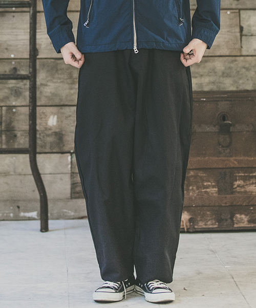 175cm B90-W73-H89 靴26.5cmのモデルがMサイズを着用ワイドシルエットをベースにしつつ股上をやや長く設定したサルエル風ワイドパンツで、股下もやや短く設定していることにより程よいボリューム感を持ちつつも、すっきりと見えるシルエットです。※着用画像と商品単体画像で色が異なる場合がございます。※商品単体画像を実物により近づけております。