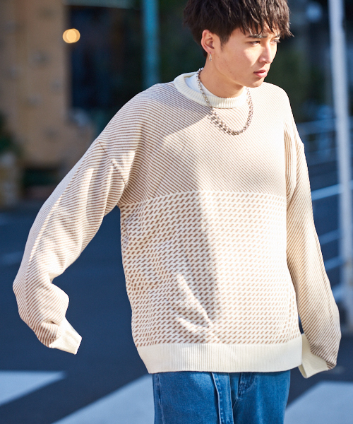 ご覧いただく環境により、画像と実物が違った色味の場合がございます。 ご了承ください。 春用の綿混のニットを採用した、 春まで使えるジャガード編みニット。 細かい柄がヴィンテージ感たっぷりで、 古着ミックスのスタイリングなどに最適です。 【生地の特徴】 しっかりした生地ですが、 綿混ですので、 春にもサラッと着ていただけるニット素材です。 【お買い物をよりお楽しみいただくために】 ▼商品のお気に入り登録(ハートマークをクリック) 完売カラーの再入荷通知や、ラスト1点の通知、セールの通知も受けることができます。 ▼ブランドのお気に入り登録 新商品や再入荷など、いち早くブランドのお得な情報を受け取ることができます。