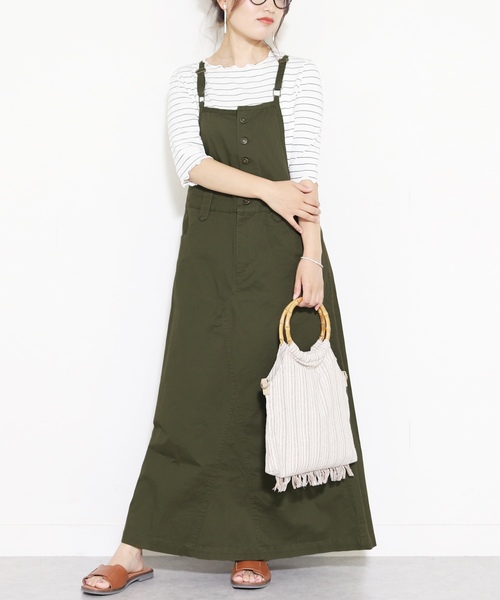 【ポイント】 オールシーズン着まわせるワードローブに揃えておきたい優秀サロペット 1枚持っておくべき!!大人のサロペット。 スカートのラインはキレイなシルエットを演出し女性らしい印象に。 スニーカーやサンダルとも相性がよくコーディネートの幅も広がります。 ☆スタッフおすすめポイント☆ 締め付け感なく着用できラフなこなれ感を演出してくれます♪ 【生地感】 硬すぎない生地に改良し動きやすく軽い着心地。 表面はなめらかな優しい肌触り。 【サイズ感】 選べる3サイズ展開♪ 普段Sサイズ着用の方⇒○ 普段Mサイズ着用の方⇒○ 普段Lサイズ着用の方⇒○ ※体型やお好みにより個人差がございます。 あくまで着用時の雰囲気の目安としてお考え下さい。 ※モデル着用写真は撮影環境により、多少実際のカラーと異なる場合がございます。予めご了承をお願いいたします。 ※生産時期により若干の色ブレやサイズの変動が生じる場合がございます。予めご了承くださいますようお願いいたします。