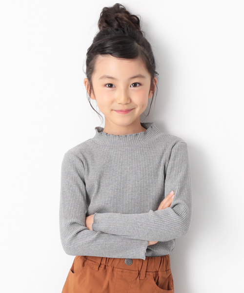 着回し力抜群の、『リブ長袖Tシャツ』。 ひらひらと波打つメロウ仕上げで、首元と袖にさりげなく甘さをプラス。 伸縮性のあるリブ素材で着心地も良く、からだに程よくフィットします。 キッズからジュニアまでをカバーする100cm~160cmまでの豊富なサイズ展開になっています。 同シリーズの半袖タイプもご用意しております。 ■ディティール■ 伸縮性:あり ・プチハイネック仕様 ・首元と袖口はメロウ仕上げ ・便利なお名前タグ付き