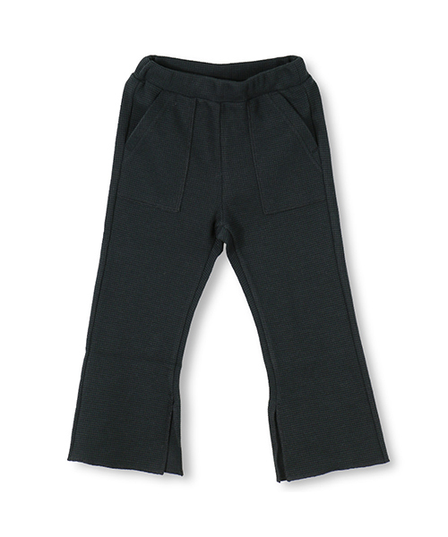 ワッフル素材を使用したトレンドのスリット入りロングパンツです。コーディネートの幅は広く、また柔らかい素材ですのでキッズにも取り入れやすいトレンドアイテムです。シンプルなTシャツやカットソー、チュニックやスウェットと合わせても旬のスタイリングが楽しめます。足元はスニーカーやスリッポン、夏はサンダルにもぴったり!ベレー帽やキャップなどの小物も合わせてコーデを楽しんでくださいね。