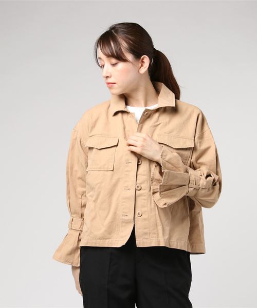 袖のフレアデザインがポイントのミリタリージャケット。シンプルだから着回し力も抜群 カジュアルにもキレイめにも合わせて頂ける万能なアイテムです。