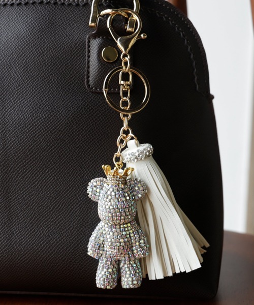 【デザイン】 キラキラしたパーツで出来たクマのバッグチャーム。 インパクトのある大きいタッセルとセットでボリュームがあるので、バッグに付けてもしっかりアクセントに。 とっても女性らしいディテールでシンプルなバッグのアクセントでもキーホルダーとしてもOK!使い分けのできる2種類のホルダーも嬉しいポイント! 【注意事項】 合成皮革特有のにおいがする場合がござます。 においが気になる場合は一度陰干しされてからご使用ください。 ◆商品のお気に入り登録◆ 完売カラーの再入荷通知や、ラスト1点の通知、 セールの通知も受け取ることができますので、是非ご登録ください。 ◆ブランドのお気に入り登録◆ 新商品や再入荷などの情報を受け取ることができますので、是非ご登録ください。