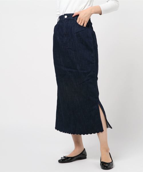 スカラップにきゅんとする事間違いなしの、この春イチオシのタイトスカート。 この春イチオシのタイトスカート! 裾に施したスカラップは小さめにして、大人の女性が履きたくなるような遊び心のあるデザイン。 子供っぽくならないよう、シルエットはすとんと落ちるタイト目のシルエットにし、シンプルに。 両サイドにはスリット入りで動きやすく、動くたびに程よく肌が見え抜け感をプラスしてくれます。 後ろウエストはゴム仕様にしている為、締めつけすぎず着心地も良く、 リブニットなどタイト目なトップスはもちろん、ふんわりとしたボリューム感のあるブラウスともバランス良く着れます。※2019年4月以降再入荷分から、アイボリーの色味に変更がございます。