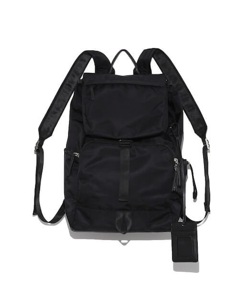 異素材を巧みに組み合わせて、モードな空気感をプラスしたバックパック。