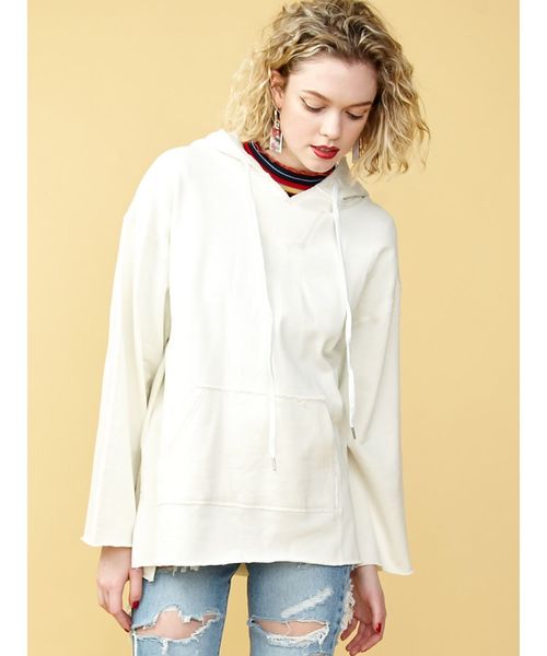 大きめのサイズ感にこだわったパーカー!シンプルなデザインなので、サイドにスリット、カットオフ加工をプラスしすっきり見えるデザインに! ハイネックインナーなどレイヤードして着こなすのがおすすめ◎