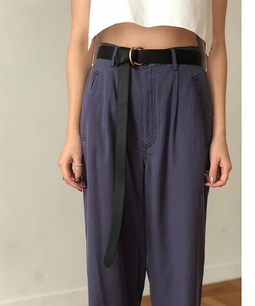 2周巻いてご使用いただく仕様の、フェイクレザーベルト。2重になったベルトはスタイリングのポイントになってくれます。ガウンなど長めの羽織りやワンピース、ブラウスなどのうえから巻いて、ブラウジングするのにもぴったりです。リングバックルなので、お好みの位置に調整して頂けます。使いやすい2色展開。