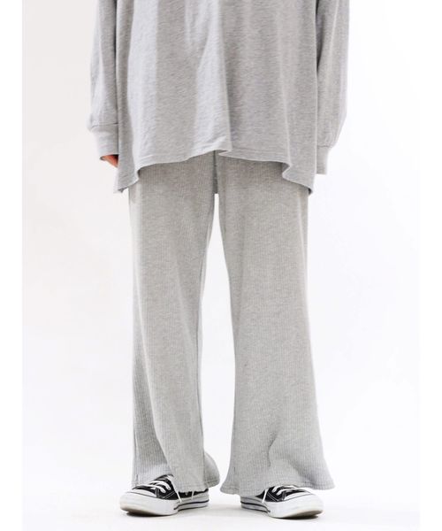 【特徴】 薄手のカットソー素材のワイドパンツ。 テレコ素材なので、よりラフでカジュアルな印象に。 ウエストはゴム仕様なので、リラックスして履いていただけます。 【スタイリングポイント】 ビッグシャツとレイヤードしてウエストマークしたり、カジュアルアップしたスタイリングがオススメです。