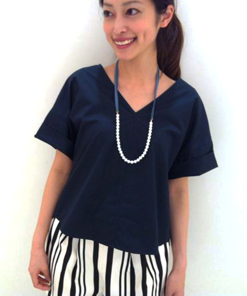 Vネックの大きく開いた首元で顔周りはきりっとした印象ですが、袖やシルエットはふんわりと優しい印象になり、大人かわいい女性になるブラウス。着丈がすっきりとしているので、ボトムスを選ばずに着ていただけます。 ※コサージュ、ネックレスは付属しておりません。