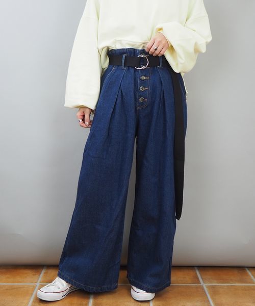 ◆スッキリ見えるボタン◆ 前ボタンが可愛いハイウェストで履けるワイドパンツです。 ベルト無しでもボタンがポイントになり可愛いデザインです♪ 生地も柔らかく腰にタック入りなので、履き心地がいいのもポイントです。 ※実店舗と発売時期が異なることがございます。あらかじめ御了承下さい。 ※撮影場所やお使いのモニター環境により若干お色味が異なる場合がございます。 ※お取り扱いに関しましては、商品に付属のアテンションタグをご覧ください。