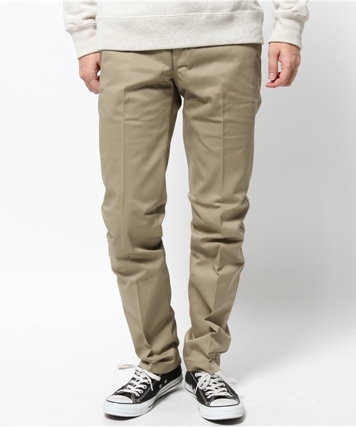WD3876スリムチノに比べて太さ自体はさほど変わりがないが、股上を浅くすることにより、さらにタイトな作りとなったエクストラスリムはディッキーズパンツの中でももっとも細身の部類。 ストレッチ素材以外のスキニーワークパンツをお探しならコレに勝るものはない。 model:H181 B82 W73 H81 着用サイズ:30inch ダークネイビー 着用サイズ:32inch