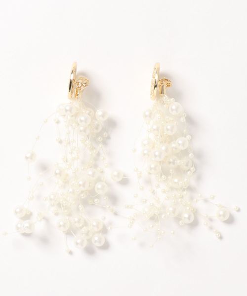 まるでシャワーのようなパール使いがエレガンスムードを呼び込むイヤリング。動くたびに揺れるスウィングタイプも視線を誘うポイント。繊細なヘッドのデザインも洗練リッチなアクセントに。きれいめスタイルはもちろん、カジュアルコーデの格上げにも効くアイテムは、大人女子の頼れる味方です。