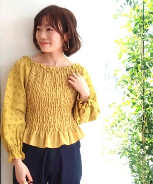 華やかなデザインのflowerらしいレースブラウス。女性的なシルエットとナチュラルな素材感の組み合わせが甘くなり過ぎないヘルシーな女性らしさを演出してくれます。身頃にはシャーリングをよせてコンパクトなシルエットにし対照的に袖のデザインはふんわりたっぷりのバルーンシルエットにしました。どんな方にでもマッチする好バランスに仕上げております。袖にはお花柄のカットワークレースを贅沢に使用しました。虹の様なhappyなカラー展開も魅力的。色によってがらりと雰囲気が変わるのでぴったりなカラ―を見つけてみて下さい☆明るい日差しの下で映えるイエロー、しとやかな女性らしいブルー、着る人の個性を引き出すホワイト、優しい雰囲気に仕上がるピンクの4色展開です。
