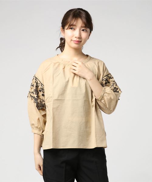 上品なレースで大人可愛いブラウスです☆ リラックス感のあるゆったりシルエットがポイント! 綿100%のソフトな素材感も魅力のひとつ♪