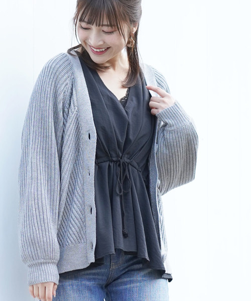 存在感を出した編地切替Vネックカーディガン 季節の変わり目にも重宝するシンプルなVネックのカーディガン。 畝の方向をさまざまに切り替えて表面感を出した編地にこだわった1枚です。 ボリュームのある袖と抜け感を作るVネックがトレンドライクなコーデに仕上げます。 また重ねるアイテムでがらりと表情が変わるのもポイント。 レースをチラ見せしたり、ハイネックを合わせたり、カジュアルなTシャツにさっと羽織ったり、コーデの幅も広がる1枚です。 裏地なし 伸縮性弱 薄手 前開きボタン留め 編み加減や染めの具合でデザインやサイズ等異なる場合もございます 洗濯:手洗い可