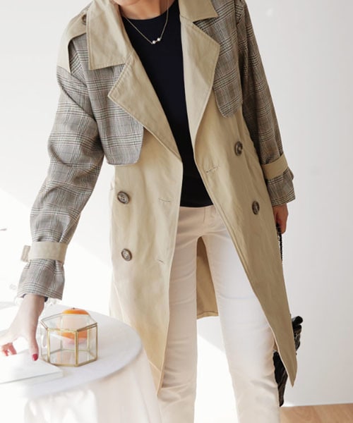 ハリ感のある定番ベージュ生地にチェックが切り替えられたユニークな裏地付きのトレンチコート。 ※WEARに記載してある金額と、DHOLIC通販サイトに記載してある金額にシステム都合上、稀に誤差が生じます。正しい金額はDHOLIC通販サイトに記載された金額です。