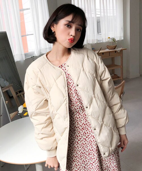 ダイヤキルティングがポイントのジャケット!サイドにはポケット付で実用性も◎! ノーカラーだからタートルネックと相性よくコーディネートが楽しめます♪ ※WEARに記載してある金額と、DHOLIC通販サイトに記載してある金額にシステム都合上、稀に誤差が生じます。正しい金額はDHOLIC通販サイトに記載された金額です。
